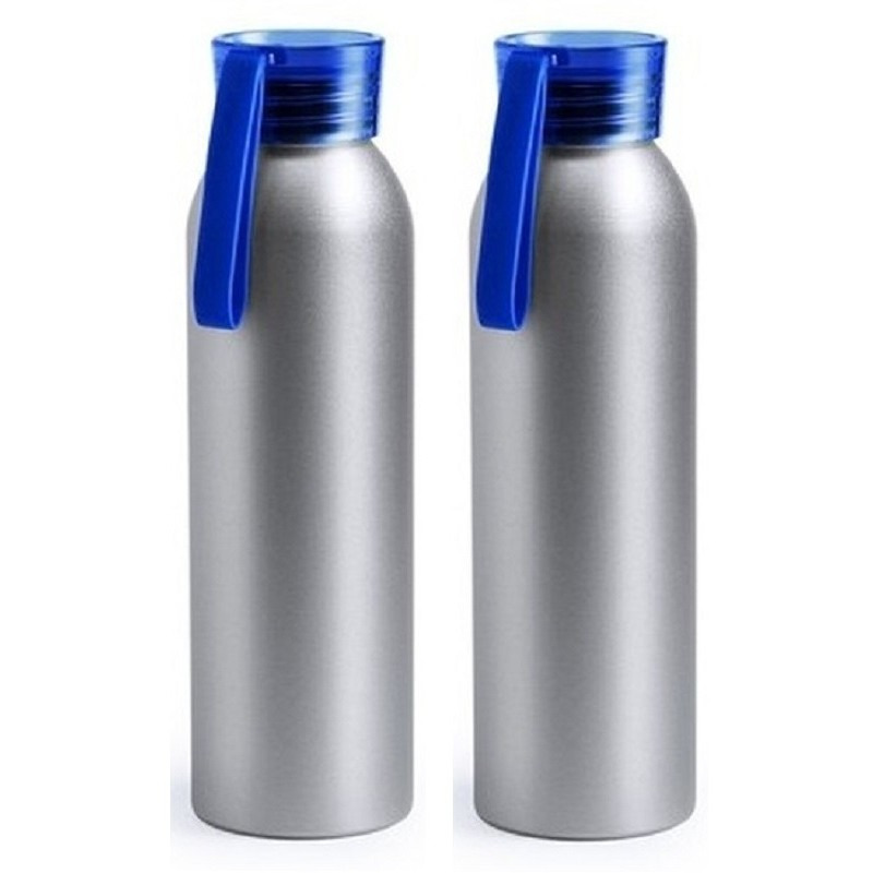 2x Aluminium drinkfles/waterfles met blauwe dop 650 ml. Een zeer handige waterfles voor vele doeleinden bijvoorbeeld tijdens het sporten. Deze aluminiumfles/bidon is voorzien van een lint zodat u hem makkelijk ergens aan vast kunt maken. Inhoud: 650 ml. Sportfles/sportbidon van aluminium. U ontvangt 2 stuks.