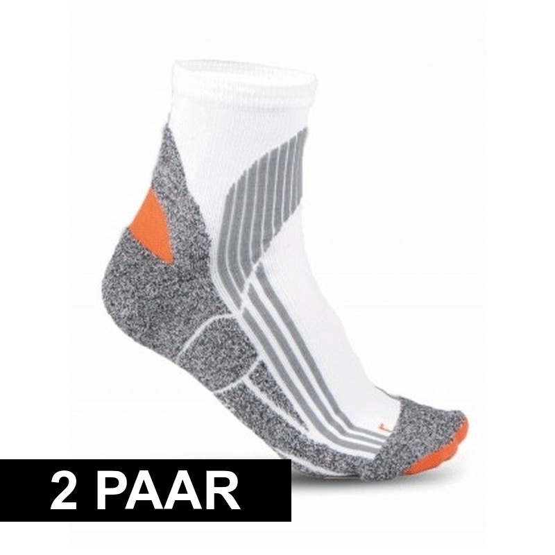 2x paar running hardloop sportsokken voor volwassenen in maat 39-42. Speciale halflange sokken die bescherming bieden tegen vocht. De sokken zijn ademend en sneldrogend. Ergonomische ondersteuning en bescherming voor de voeten dankzij een speciale tricot. Materiaal: Materiaal: 78% polyester, 19% polyamide en 3% elastane.