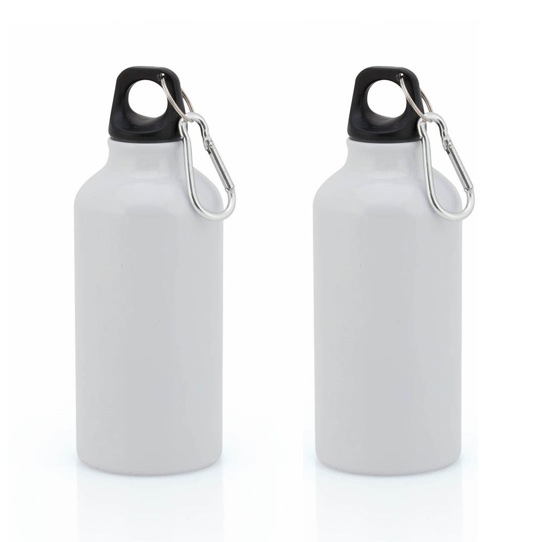 2x Stuks aluminium waterfles/drinkfles wit met veiligheid schroefdop en karabijnhaak 400 ml. Afmeting: ca. D6,5 x H17,5 cm. Inhoud: ca. 400 ml, 40 cl. Gewicht: ca. 65 gram. Materiaal fles: aluminium. Geschikt voor magnetron: nee. Geschikt voor vaatwasser: nee. Geschikt voor vriezer: ja. Wordt geleverd in een kartonnen doosje.