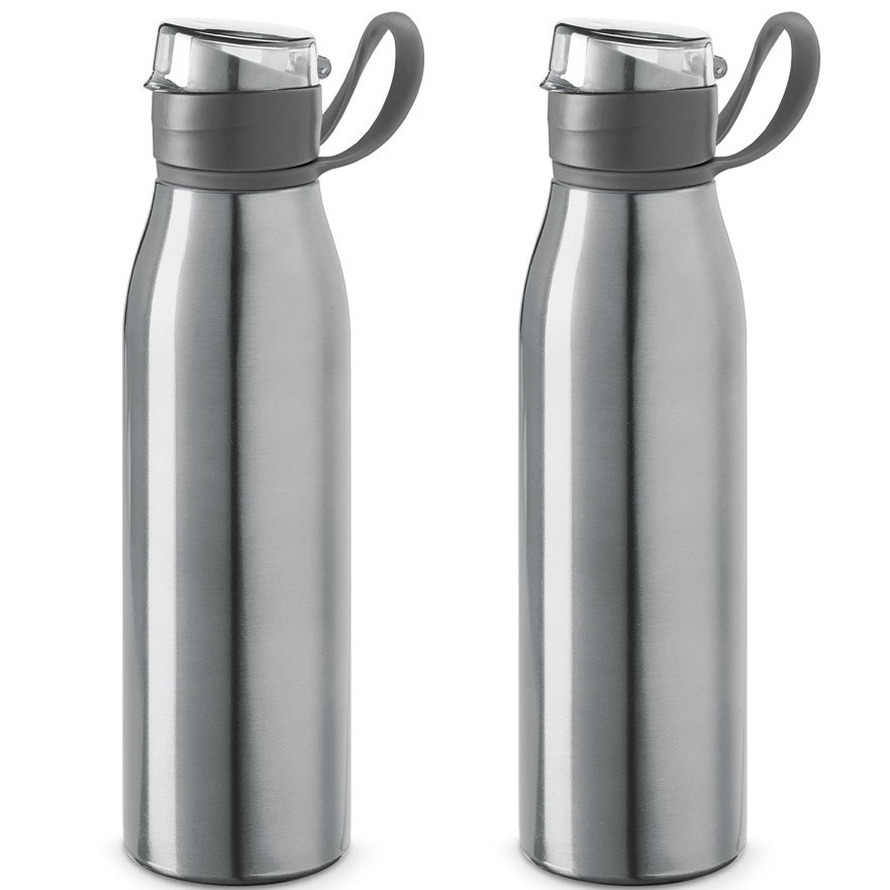 2x Stuks aluminium waterfles/drinkfles zilver met klepdop en handvat 650 ml. Afmeting: ca. D6,5 x H25 cm. Inhoud: ca. 650 ml, 65 cl. Gewicht: ca. 124 gram. Materiaal fles: aluminium met kunststof. Bpa-vrij: ja. Geschikt voor magnetron: nee. Geschikt voor vaatwasser: nee. Geschikt voor vriezer: ja.
