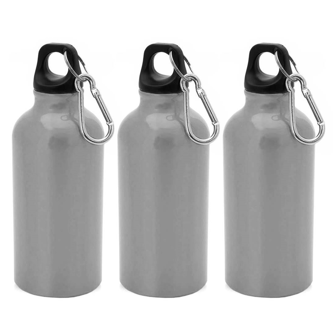 3x Stuks aluminium waterfles/drinkfles zilver met veiligheid schroefdop en karabijnhaak 400 ml. Afmeting: ca. D6,5 x H17,5 cm. Inhoud: ca. 400 ml, 40 cl. Gewicht: ca. 65 gram. Materiaal fles: aluminium. Geschikt voor magnetron: nee. Geschikt voor vaatwasser: nee. Geschikt voor vriezer: ja. Wordt geleverd in een kartonnen doosje.