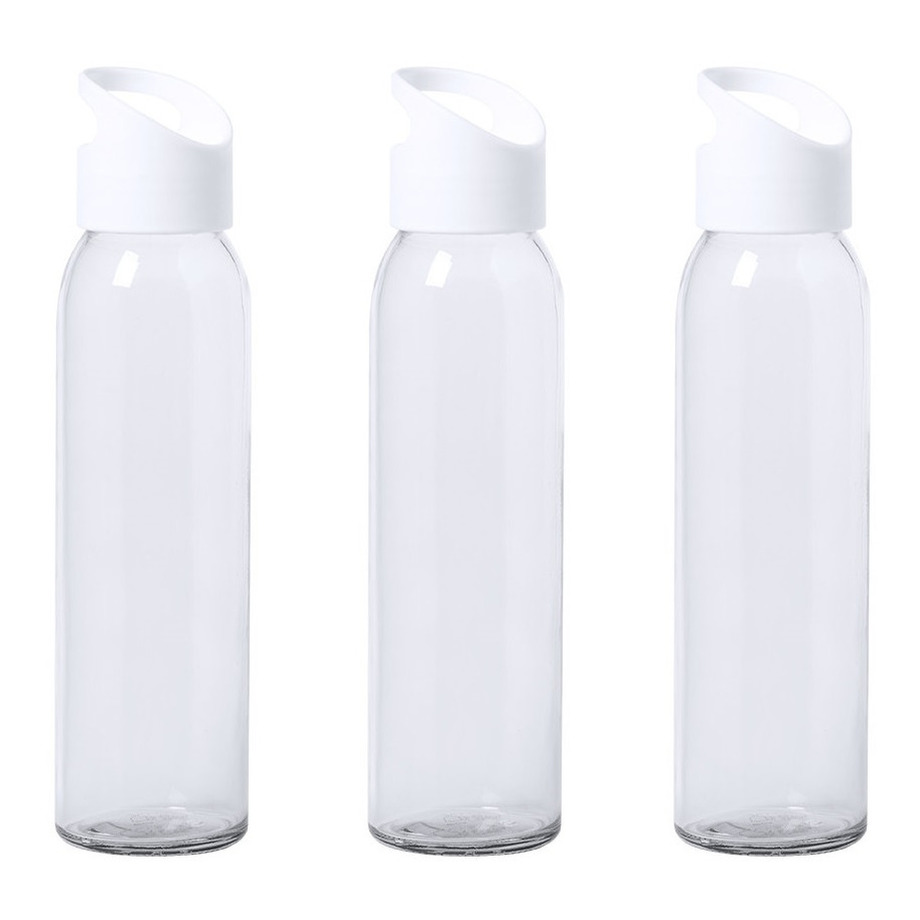 3x Stuks glazen waterfles/drinkfles transparant met schroefdop met wit handvat 470 ml. Afmeting: ca. D6,5 x H25 cm. Inhoud: ca. 470 ml, 47 cl. Gewicht: ca. 314 gram. Materiaal fles: verhard glas. Bpa-vrij: ja. Geschikt voor magnetron: nee. Geschikt voor vaatwasser: ja. Geschikt voor vriezer: ja. Wordt geleverd in een kartonnen doosje.
