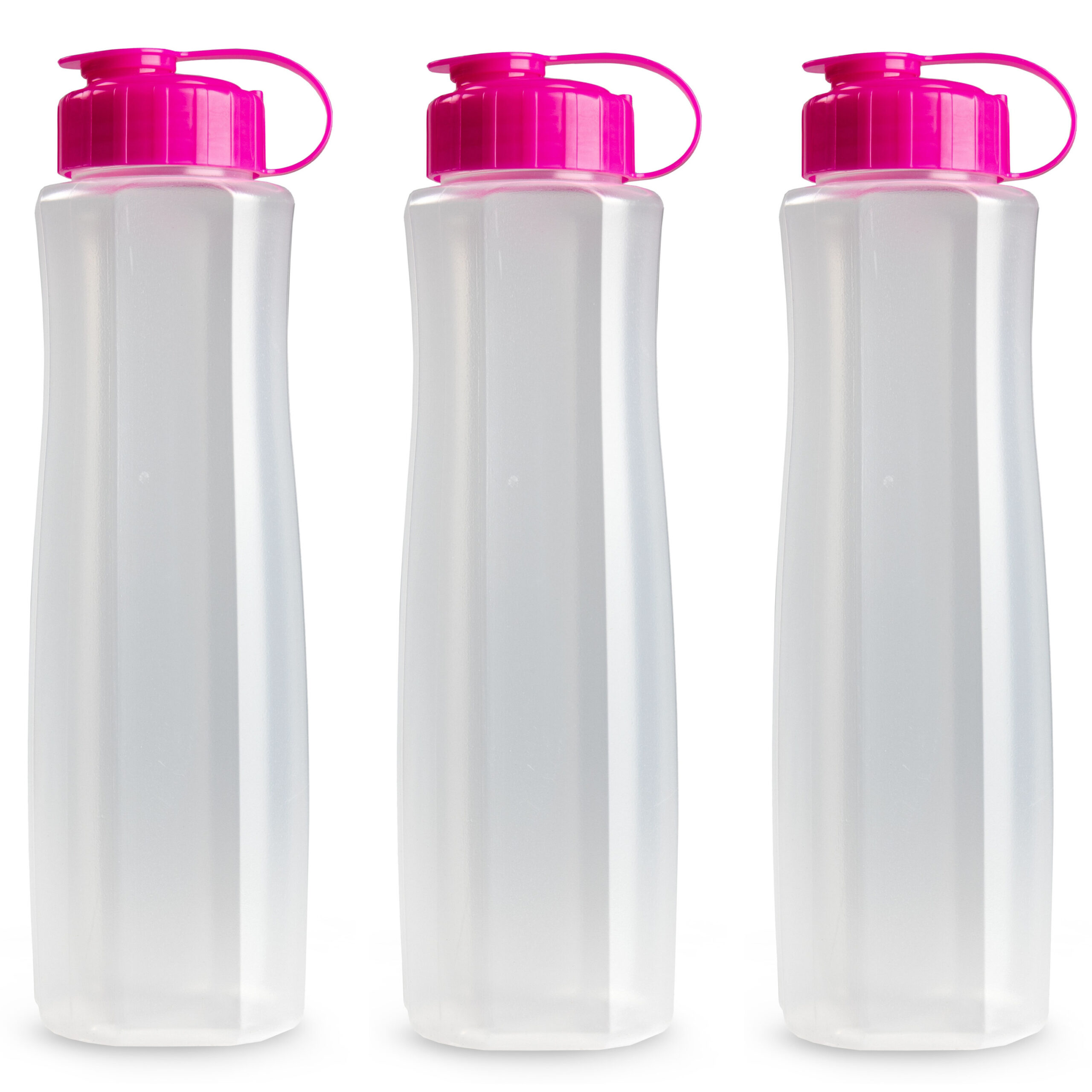 4x stuks kunststof waterflessen 1500 ml transparant met dop roze