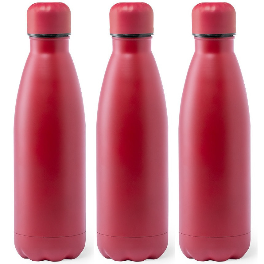 3x Stuks RVS waterfles/drinkfles rood met veiligheid schroefdop 790 ml. Afmeting: ca. D7,5 x H26 cm. Inhoud: ca. 790 ml, 79 cl. Gewicht: ca. 175 gram. Materiaal fles: Rvs. Geschikt voor magnetron: nee. Geschikt voor vaatwasser: nee. Geschikt voor vriezer: nee. Wordt geleverd in een kartonnen doosje.