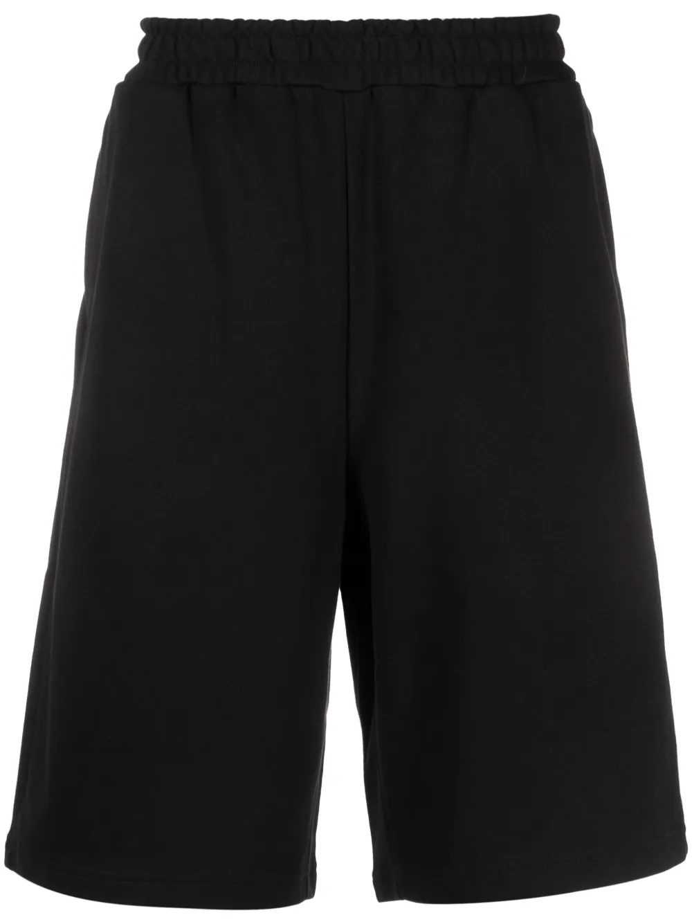 noir coton design en maille logo imprimé sur le côté ceinture élastique deux poches passepoilées latérales poche arrière passepoilée coupe ample longueur genou Lorsque vous passez commande, veillez à prendre en compte que les mensurations indiquées pour cet article unisexe correspondent à la taille homme.