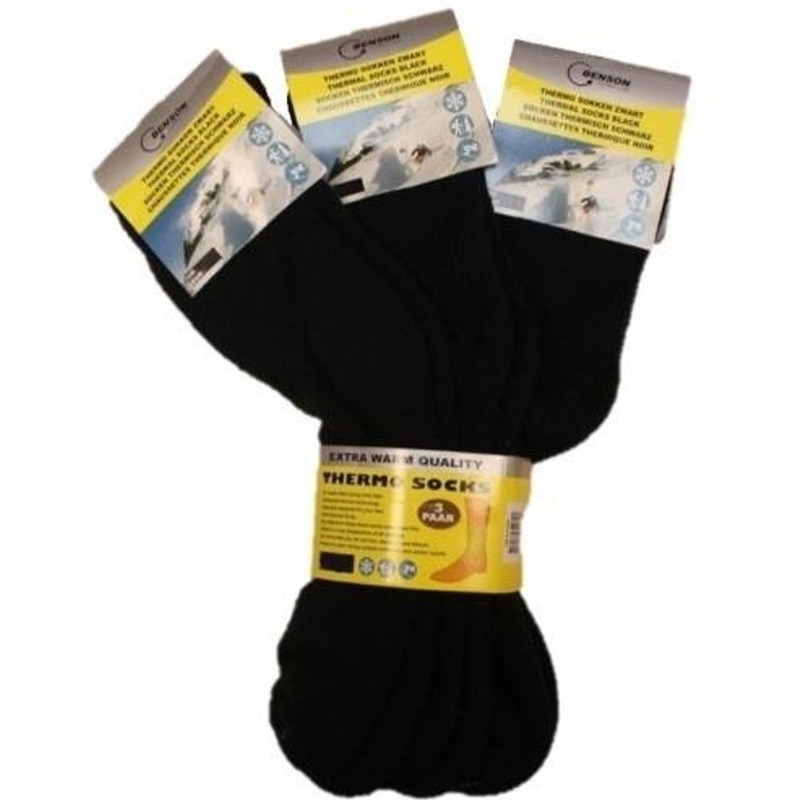 6 paar Thermo sokken zwart in de maat 43-46. Deze zachte sokken houden uw voeten te allen tijde warm en zijn ideaal om te dragen tijdens wintersport of op koude dagen. Materiaal: 80% polyester, 20% elastan. Warmte sokken voor volwassenen.