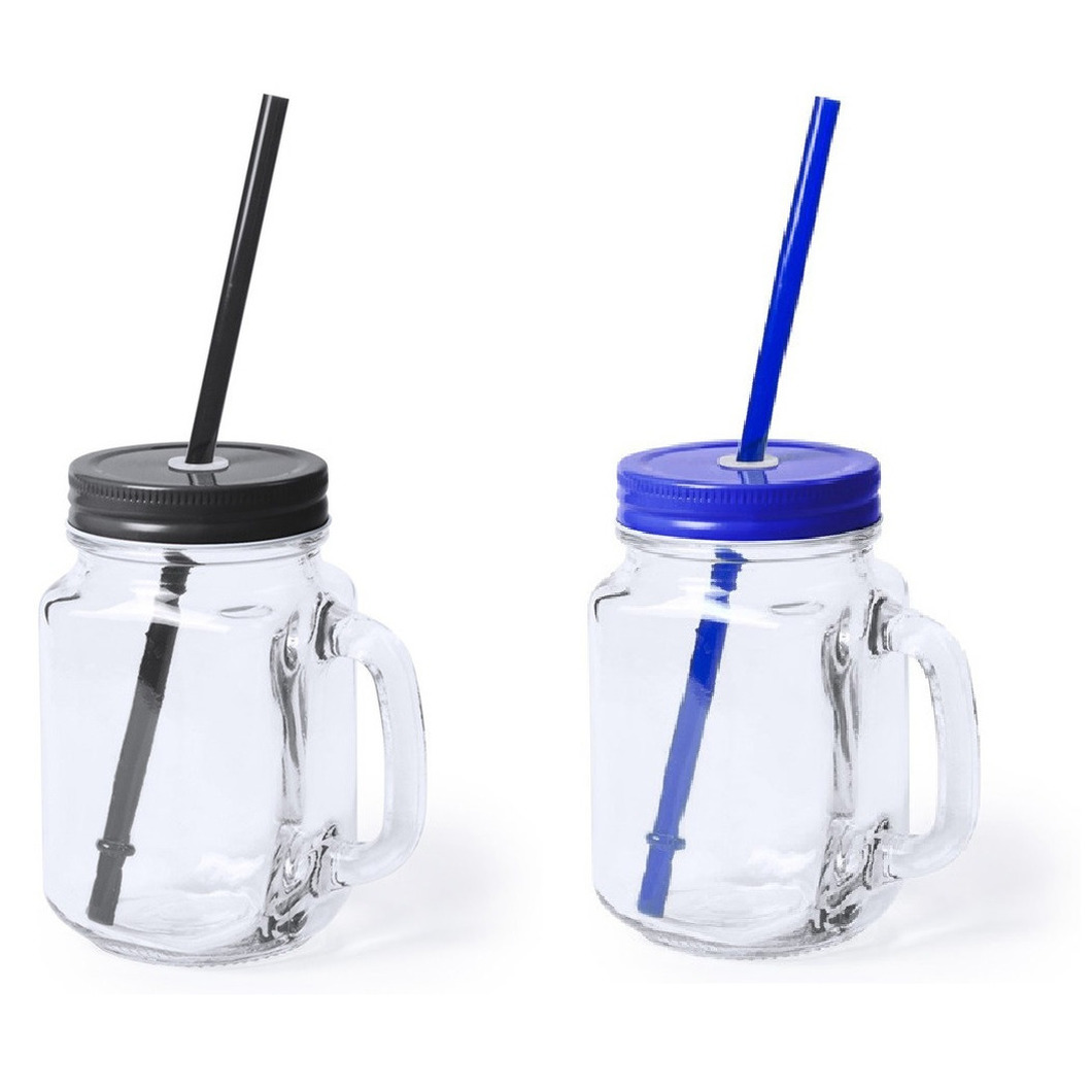 Set van 6x stuks Glazen Mason Jar drinkbekers/potjes met dop en rietje met een inhoud van 500 ml. Limonade, Fruit shakes of andere drankjes anti lekken drinkpotten bekers. Formaat ongeveer: 7,5 x 13,5 cm. Kleurencombinatie: 3x Zwart en 3x blauw. , Dit artikel bestaat uit:, 3x Mason Jar drinkbekers – glas – dop blauw met rietje – 500 ml – afsluitbaar – fruit shakes, 3x Mason Jar drinkbekers – glas – dop zwart met rietje – 500 ml – afsluitbaar – fruit shakes