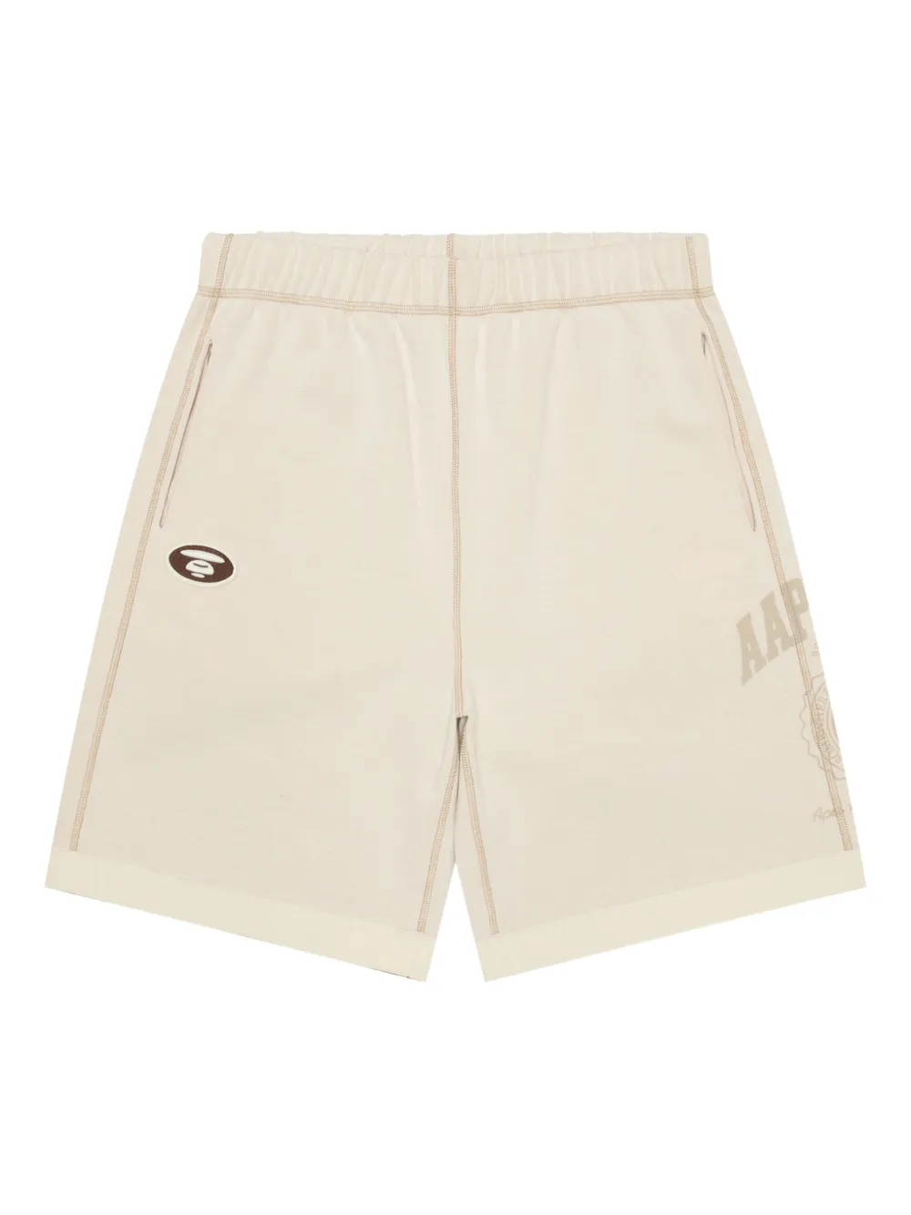 crème ceinture élastique des poches latérales zippées texte graphique poche arrière plaquée détail de logo contrastant