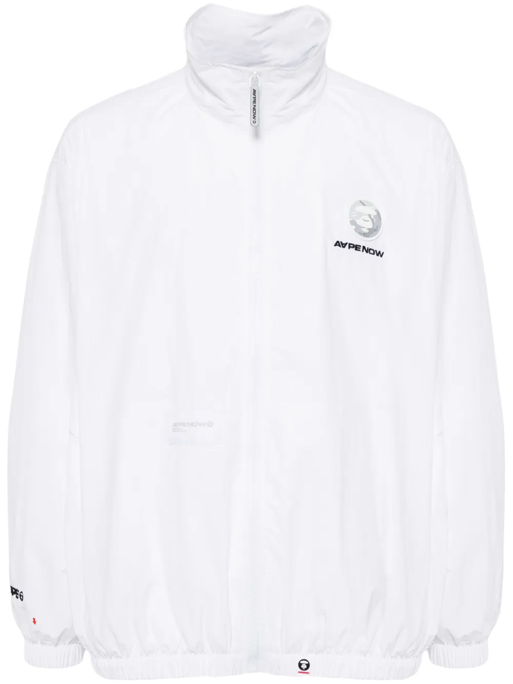 blanc col montant fermeture zippée devant manches longues patch poitrine à logo slogan imprimé sur l’arrière ourlet élastiqué ourlet droit