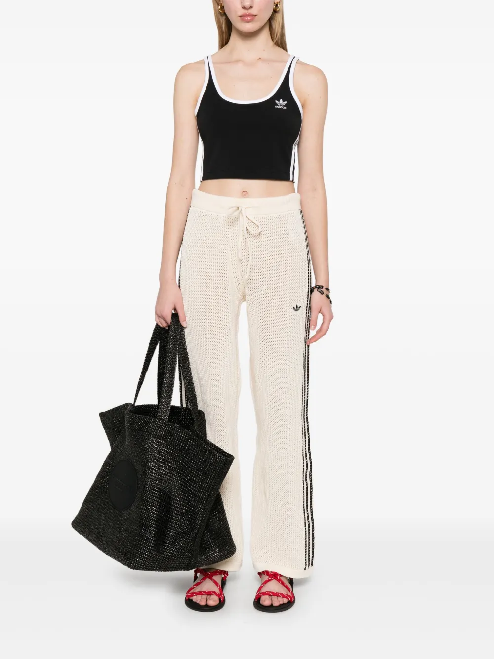 zwart geborduurd logo op de borst ronde hals contrasterende afwerking