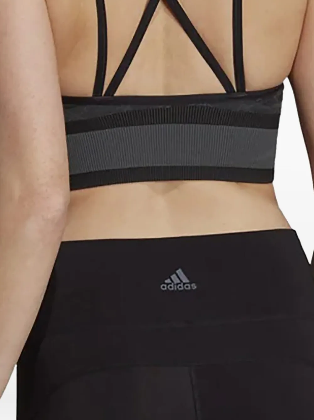 zwart geometrisch patroon gekruiste bandjes V-hals brede band naadloze constructie