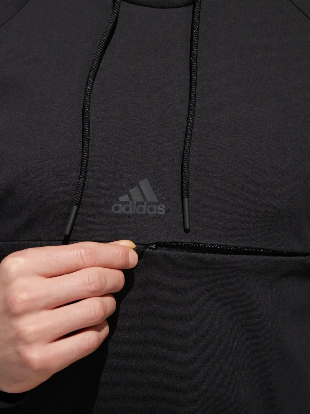 zwart zak met rits capuchon met trekkoordsluiting raglan mouwen logoprint katoenblend