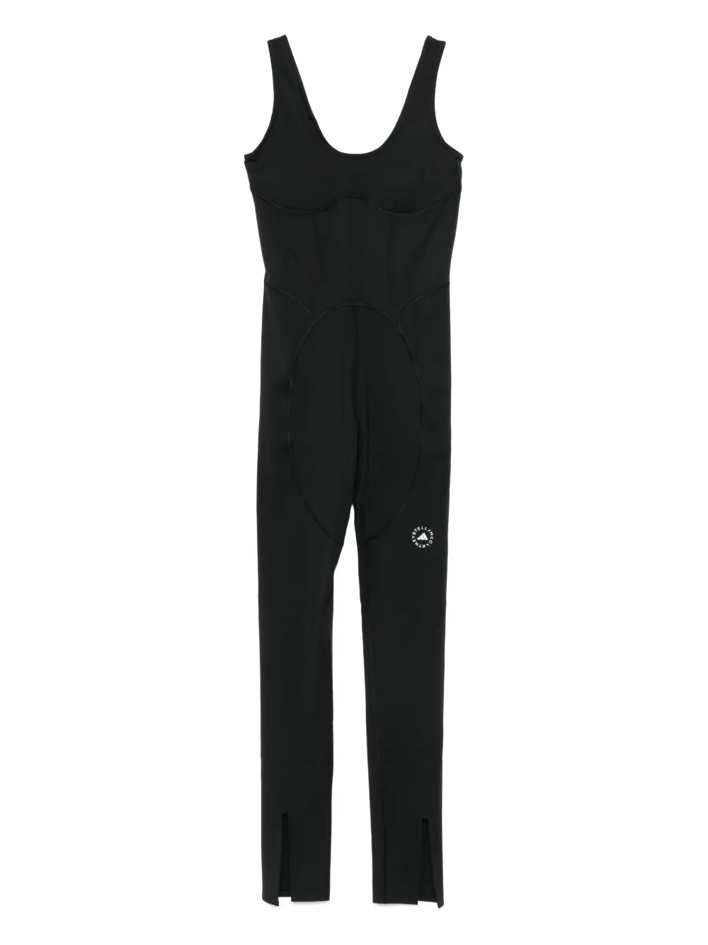 noir encolure arrondie corsage ajusté surpiqûres incurvées fentes sur les jambes
