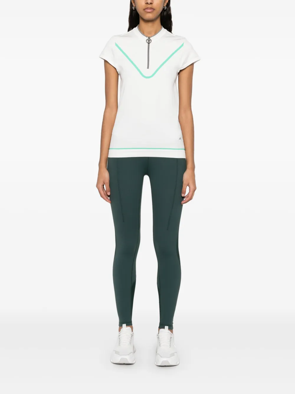 wit korte knoopsluiting aan de voorkant logo applicatie geribbelde bandkraag korte mouwen