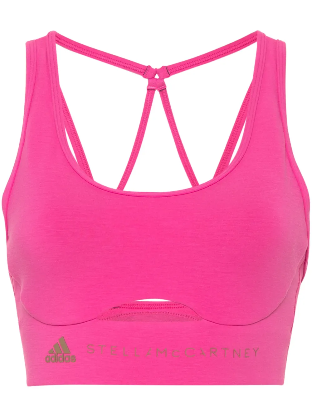 rose fuchsia mélange modal design stretch maille bretelles fines encolure arrondie bonnets moulés découpes sur le devant logo en caoutchouc à l’avant coupe crop bretelles croisées au dos logo imprimé à l’arrière doublure en résille rembourrage amovible ceinture élastique ↑ ^