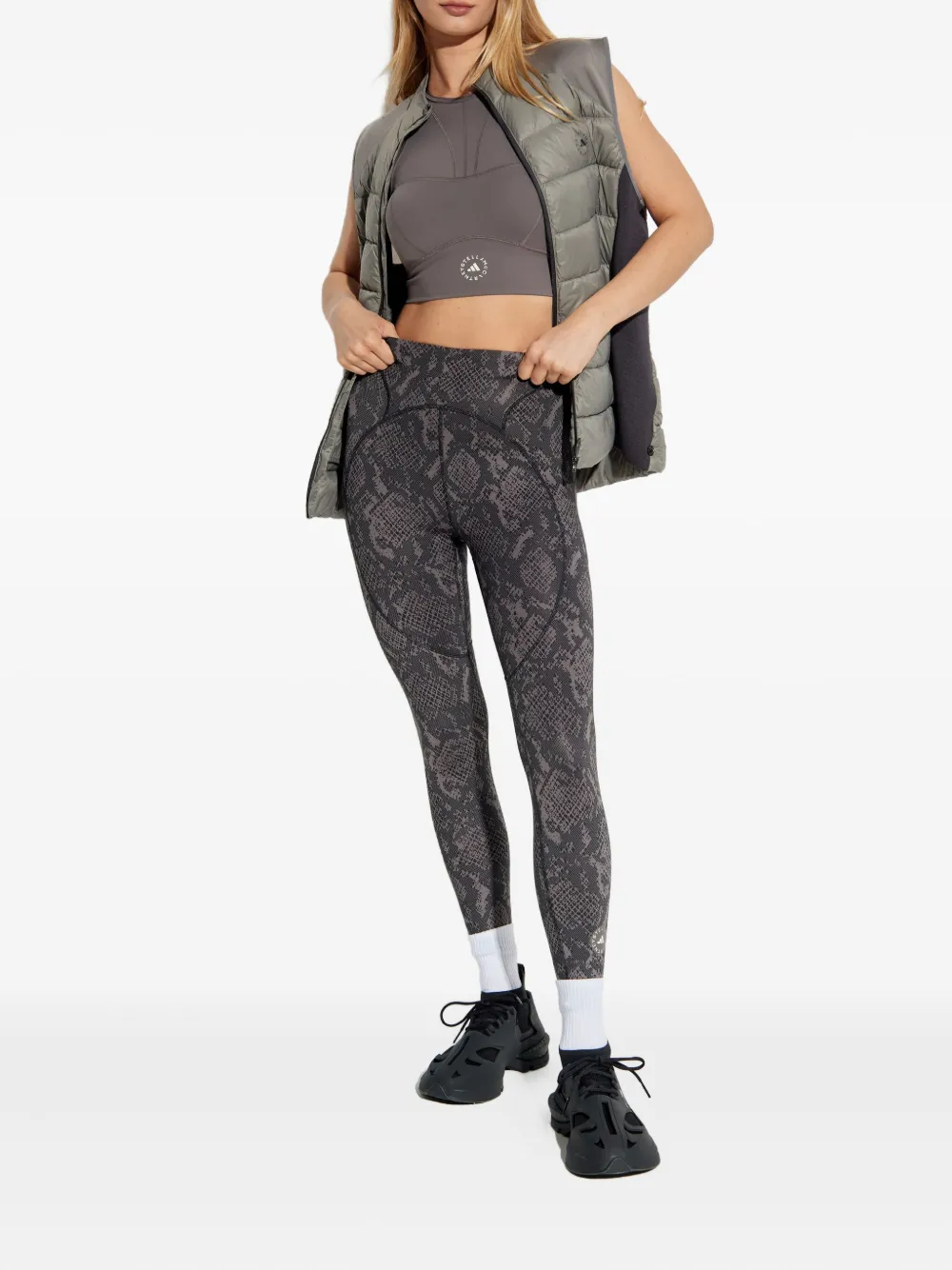 adidas by Stella McCartney Sport-bh met slangenprint – Zwart