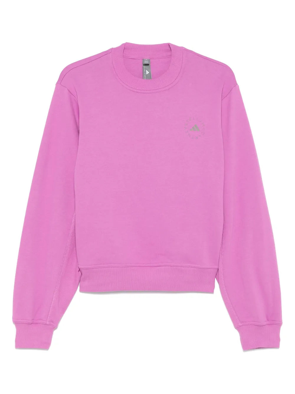 rose fuchsia col rond logo imprimé à la poitrine manches longues ourlet et bords nervurés