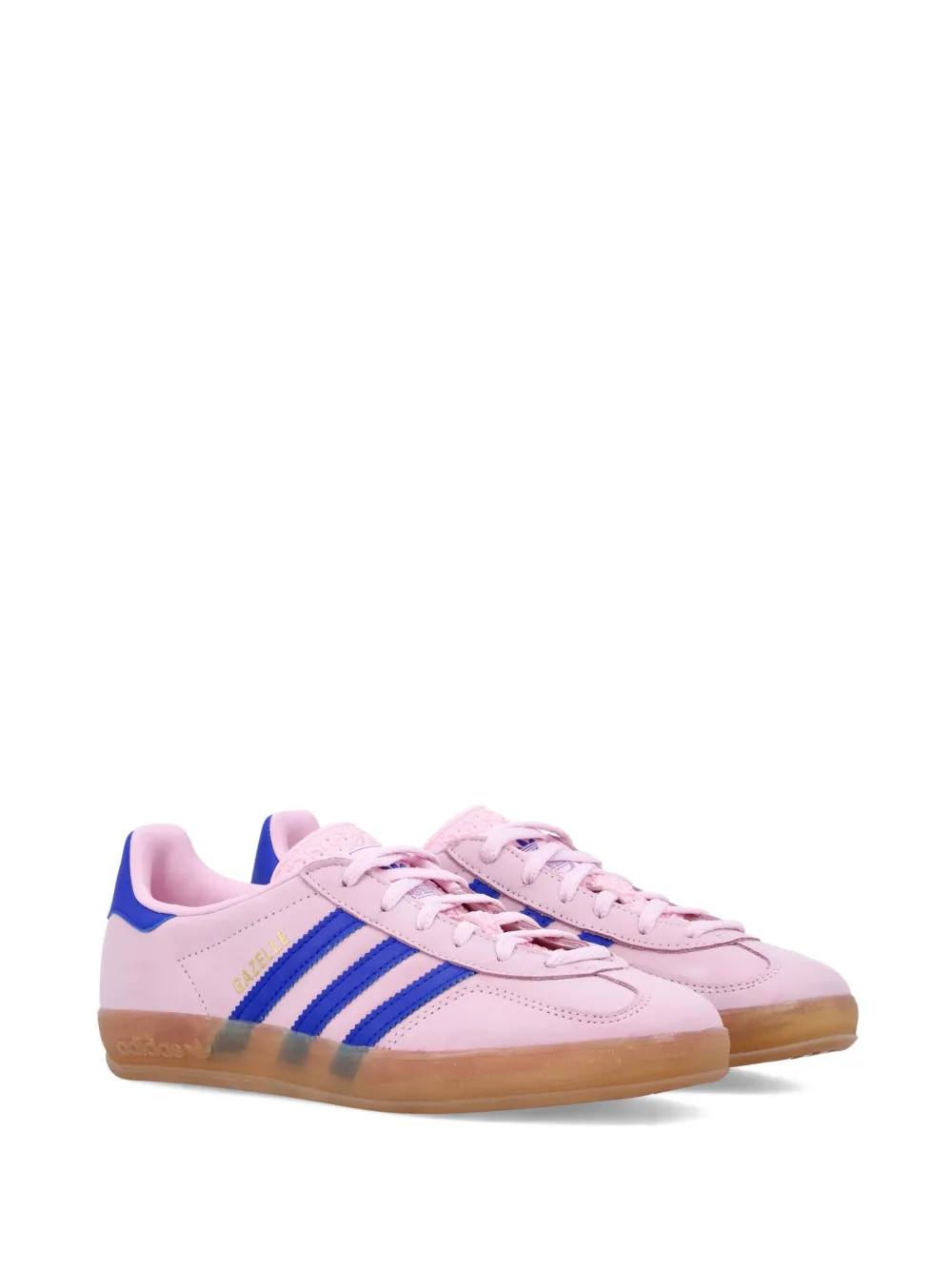 kauwgomroze/koningsblauw leer veters aan voorkant contrasterende hak logo-reliëf aan de zijkant kenmerkend 3-Stripes logo logopatch op de tong ronde neus binnenzool met logo platte rubberen zool