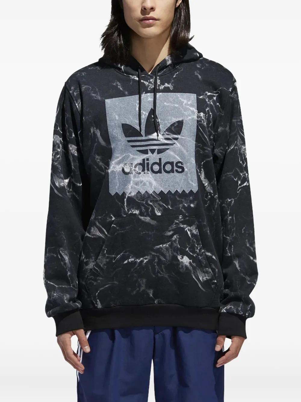 bleuchemise à imprimé marbré logo imprimé capuche à lien de resserrage poche kangourou manches longues