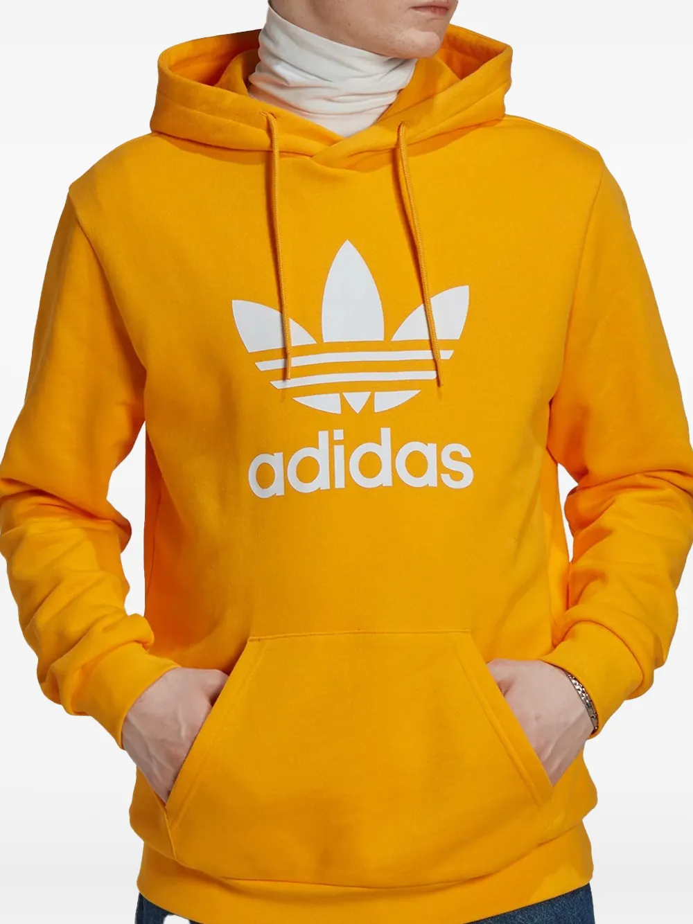 orange carotte capuche à lien de resserrage manches longues poignets nervurés logo Trefoil signature poche plaquée sur le devant ourlet nervuré