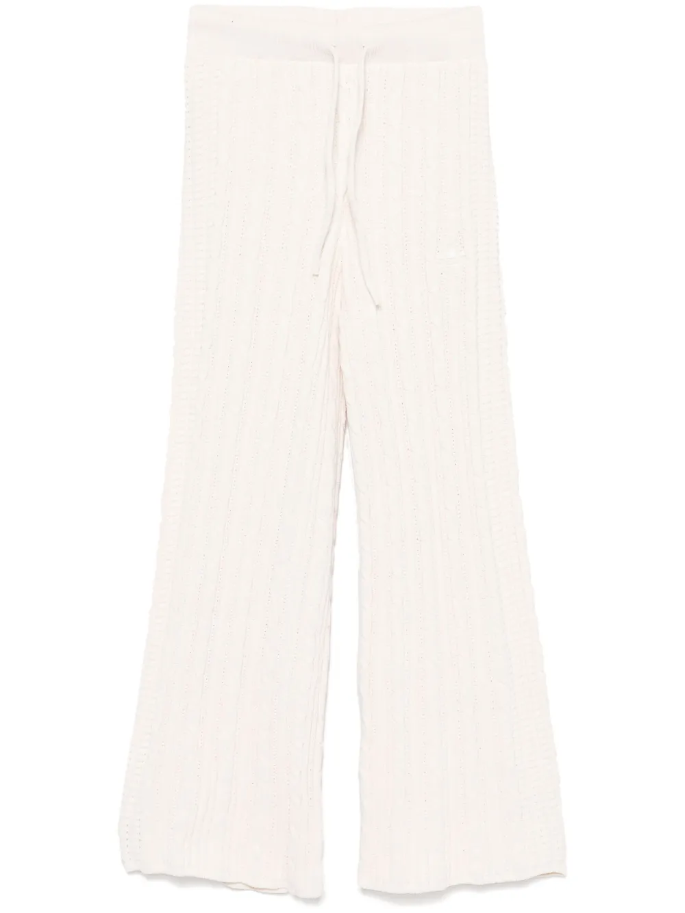 blanc polyester recyclé maille torsadée lien de resserrage taille nervurée trèfle signature coupe droite ^
