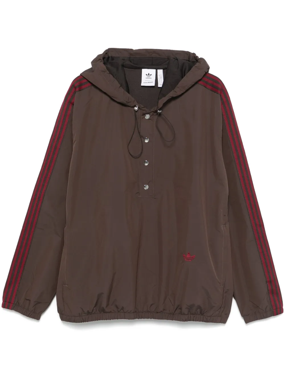 brun cèdre polyester recyclé structure légère fermeture à boutons pression sur le devant capuche souple à lien de resserrage rayures 3-Stripes signature manches longues poignets élastiqués deux poches latérales zippées logo brodé sur le devant doublure en résille ourlet élastiqué ^