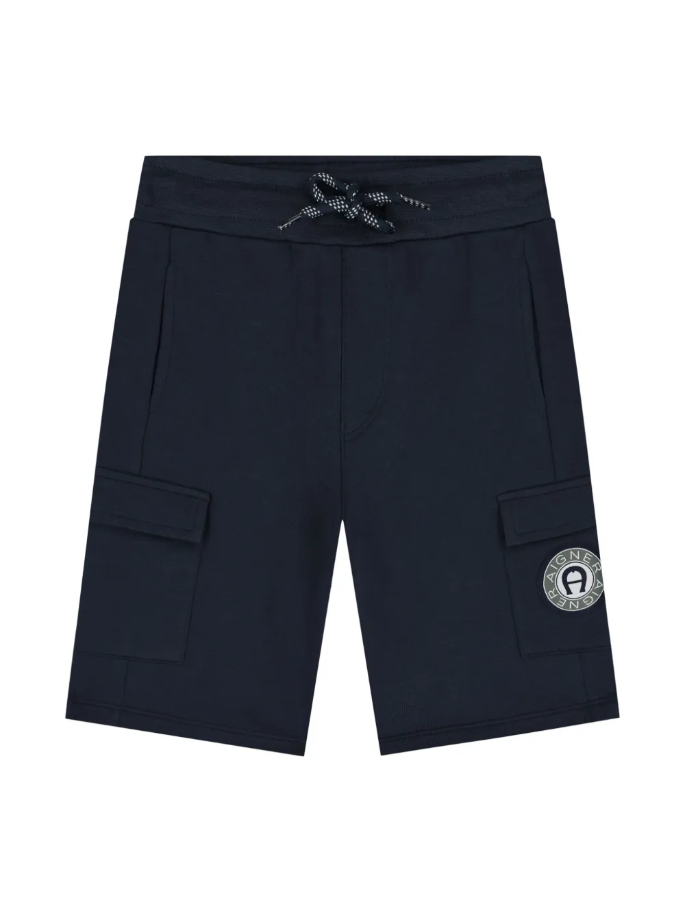 bleu marine coton stretch appliqué logo taille élastique à lien de resserrage poches latérales fendues poches latérales cargo ourlet droit