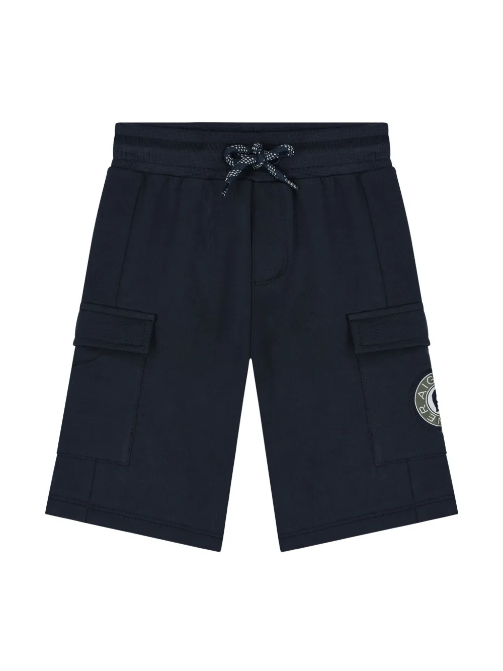 bleu marine coton appliqué logo taille élastique à lien de resserrage poches latérales cargo coupe droite