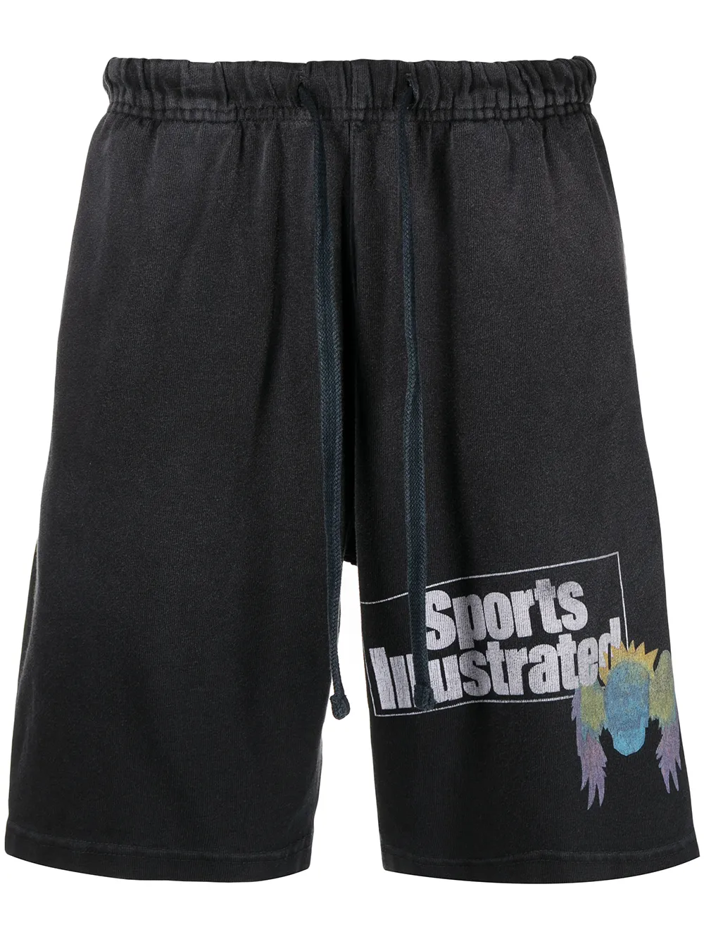 Effet délavé, logo imprimé sur la cuisse, lien de resserrage à la taille, coupe droite, longueur au dessus du genou. Couleur : noir. Matière : coton.