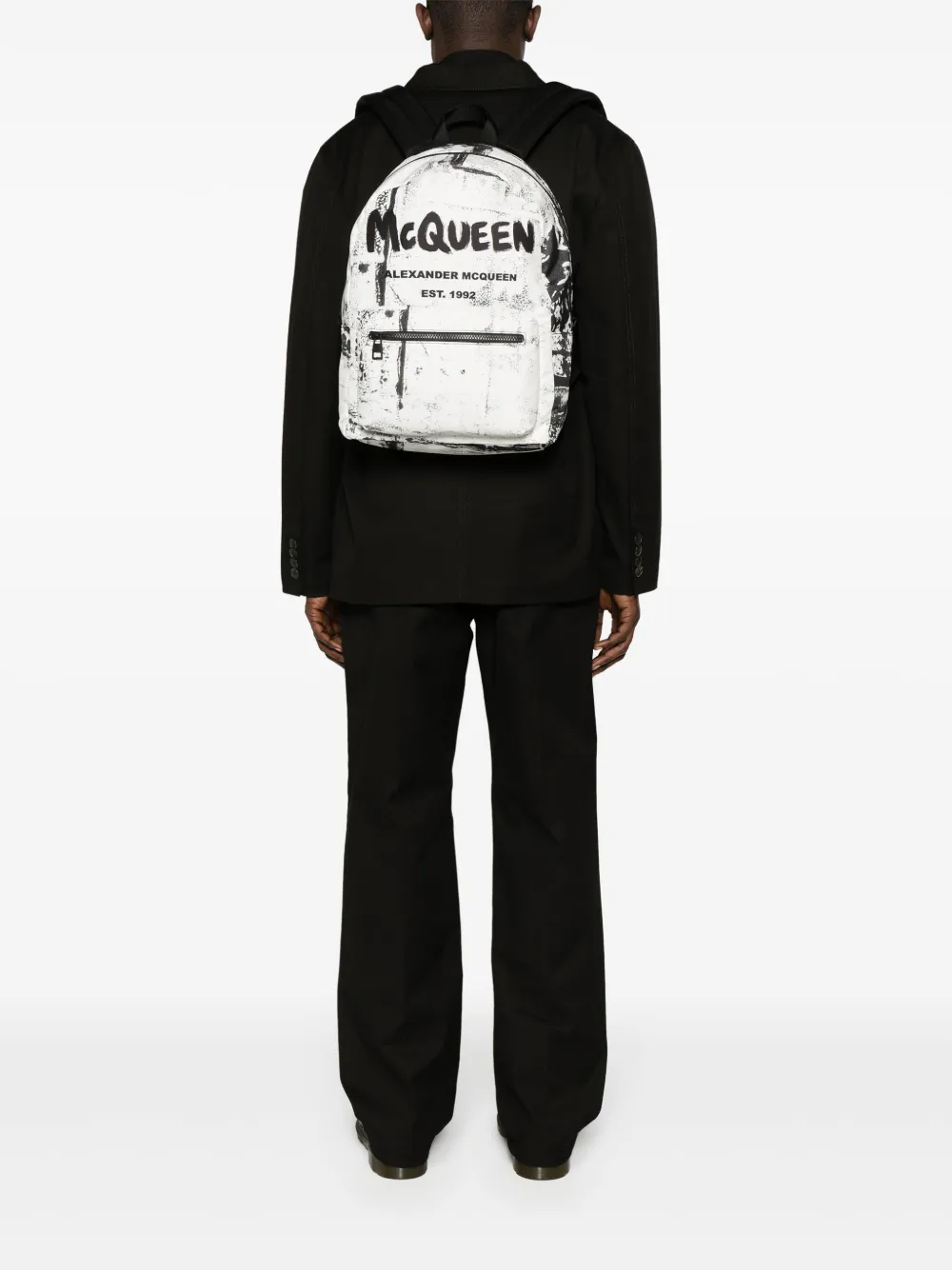 wit/zwart technische jersey logoprint op de voorkant graffiti print tweeweg-ritssluiting enkel handvat twee verstelbare schouderbanden buidel met ritssluiting op de voorkant gewatteerd laptopvak aan de binnenkant steekvak aan binnenkant voering met logo-jacquard