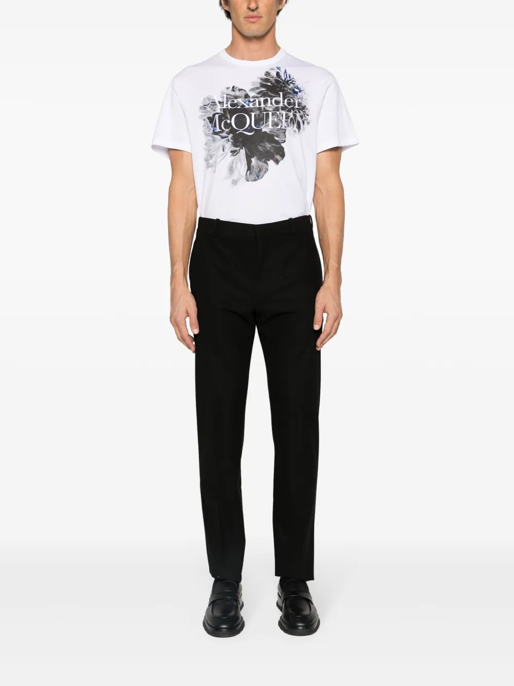wit katoen jersey textuur bloemenprint op de voorkant geborduurd logo op de voorkant ronde hals korte mouwen rechte zoom