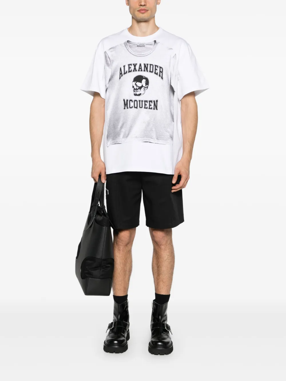 wit/zwart katoen lichtgewicht jersey grafische print en logo aan de voorkant ronde hals korte mouwen rechte zoom