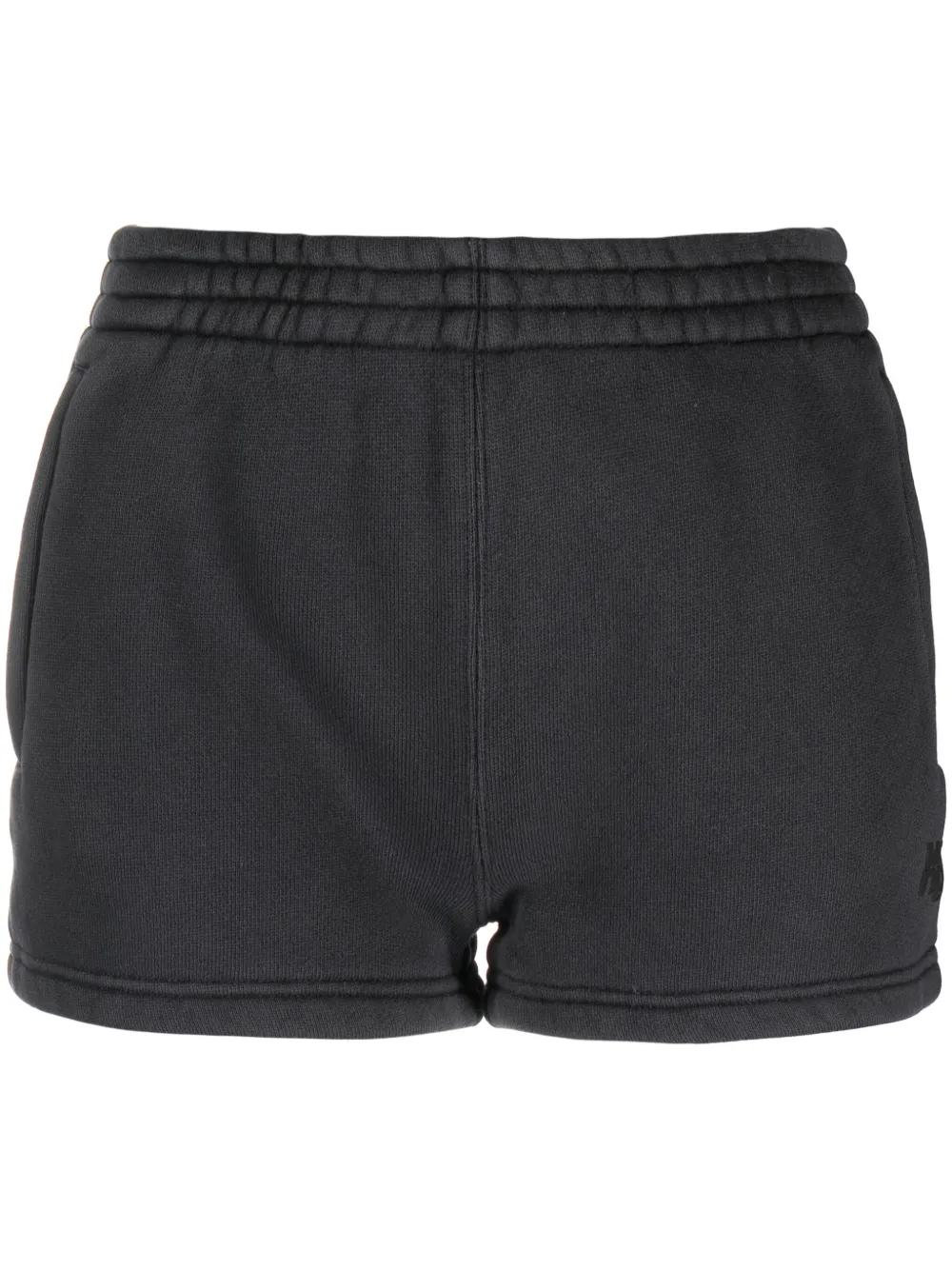 anthracite coton mélangé texture jersey logo embossé sur le devant ceinture élastique deux poches latérales zippées poche arrière zippée doublure en polaire ourlet droit coupe courte