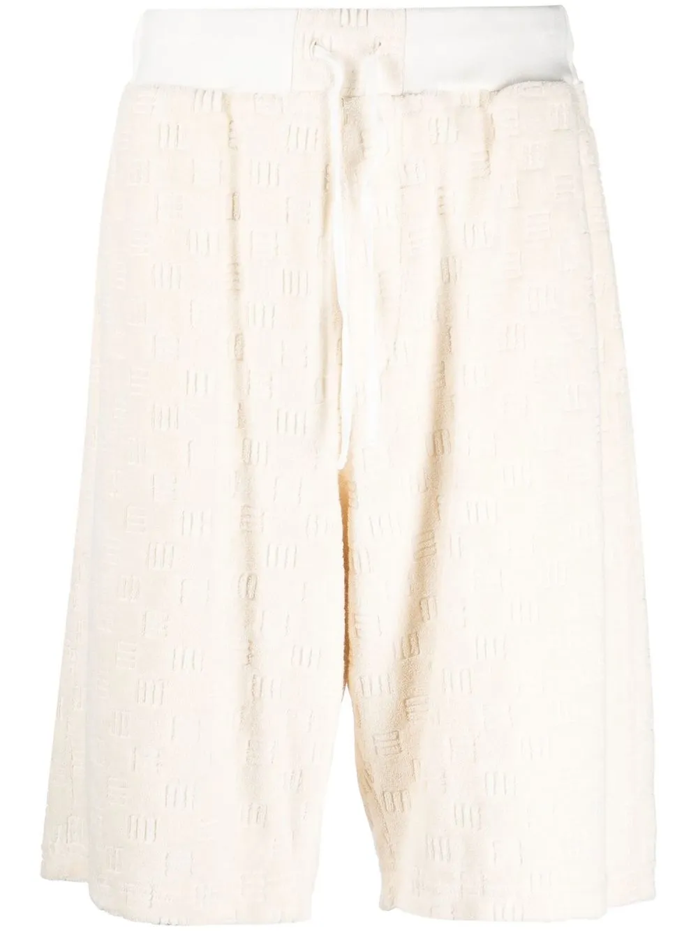 Fini éponge, motif monogrammé, taille haute, taille élastique à lien de resserrage, coupe droite, hauteur genou. Matière : coton mélangé.