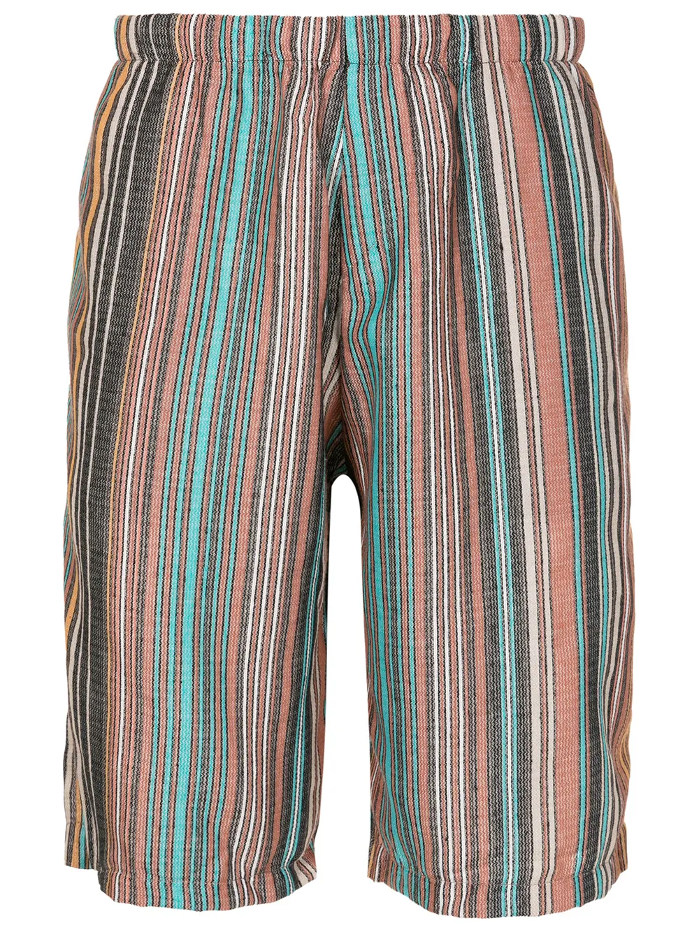 marron clair/multicolore coton mélangé jacquard à motifs rayures verticales longueur au dessus du genou poches latérales fendues ceinture élastique
