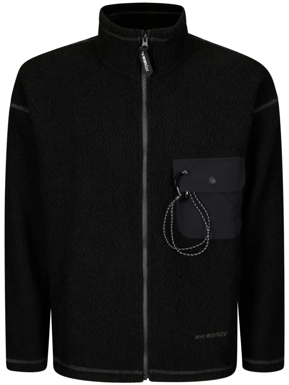 noir fermeture zippée devant poche devant à rabat attache mousqueton logo imprimé sur le devant