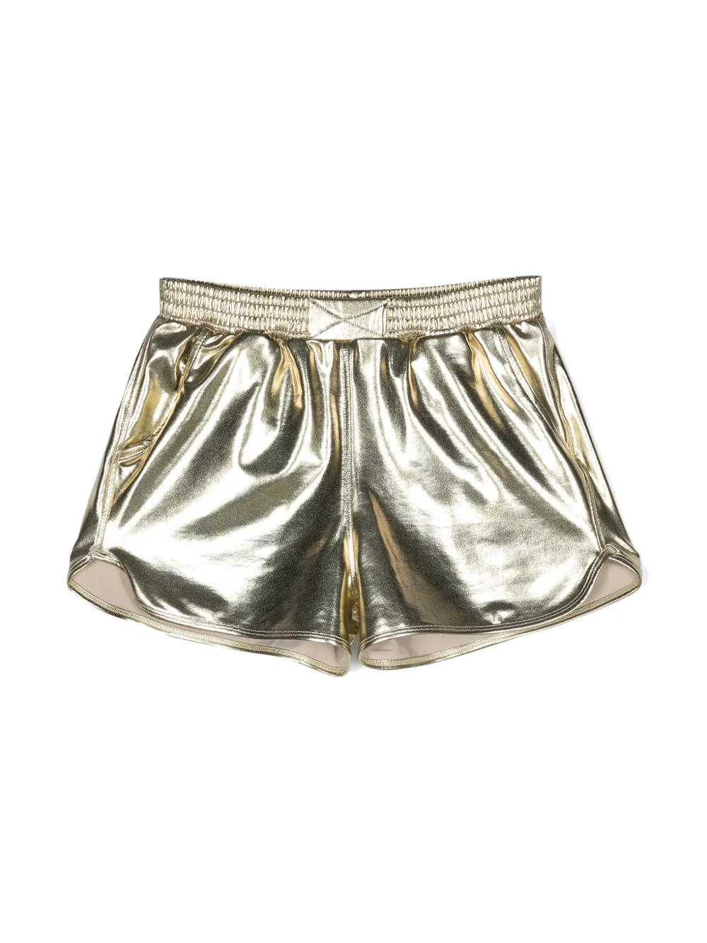 doré construction stretch fini métallisé design à empiècements coutures ton sur ton ceinture élastique ourlet incurvé coupe courte sans doublure Pour en savoir plus sur ce qui rend un produit responsable, consultez notre page critères CHOIX CONSCIENT.
