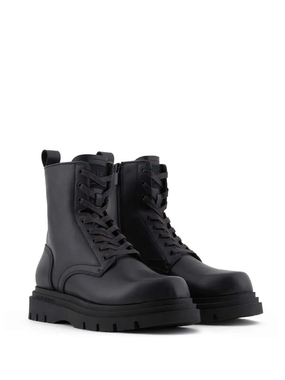 gitzwart leer gladde korrel veters aan voorkant dubbele ritssluiting bij de hiel logopatch op de tong ronde neus binnenzool met logo geribbelde rubberen zool