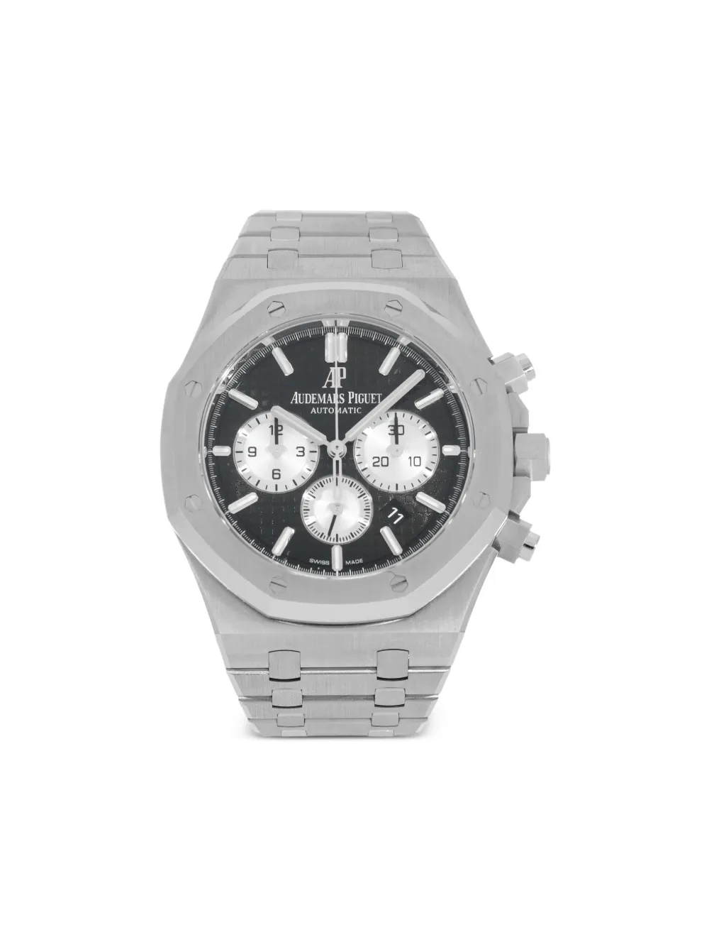 41 mm noir boîtier octogonal cadran à indicateur boîtier en acier inoxydable bracelet en acier inoxydable verre saphir mouvement automatique sous-cadrans à trois chronographes boucle déployante Cet article est neuf et non porté. Boîte et documents originaux non inclus. L’authenticité de cet article est garantie par des horlogers CHRONEXT. La garantie CHRONEXT couvre pendant deux ans tout dommage occasionné par l’eau sur les montres étanches et toute réparation du mouvement.