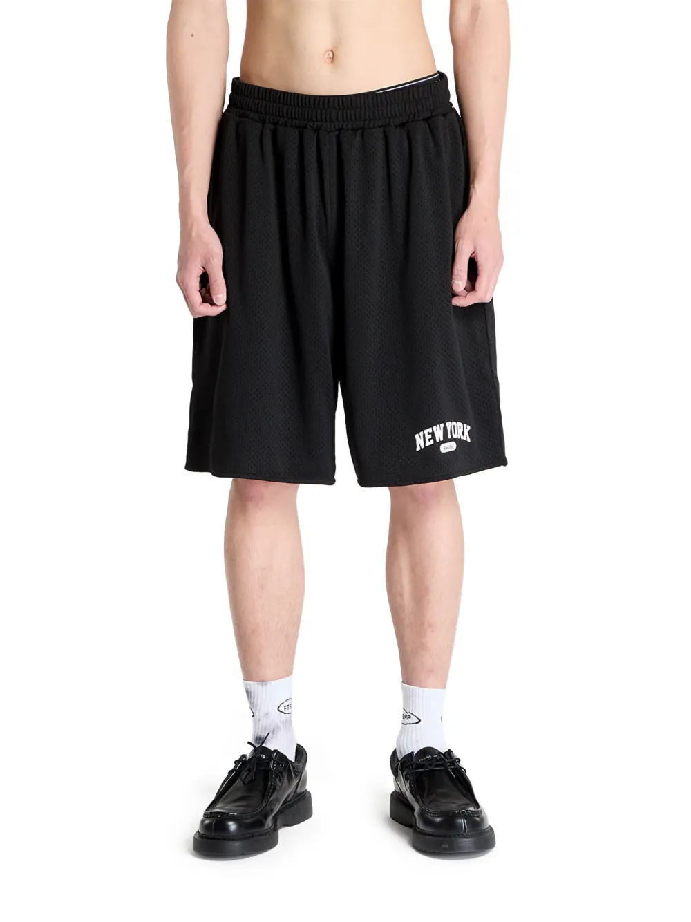 noir ceinture élastique deux poches latérales passepoilées logo imprimé sur le devant