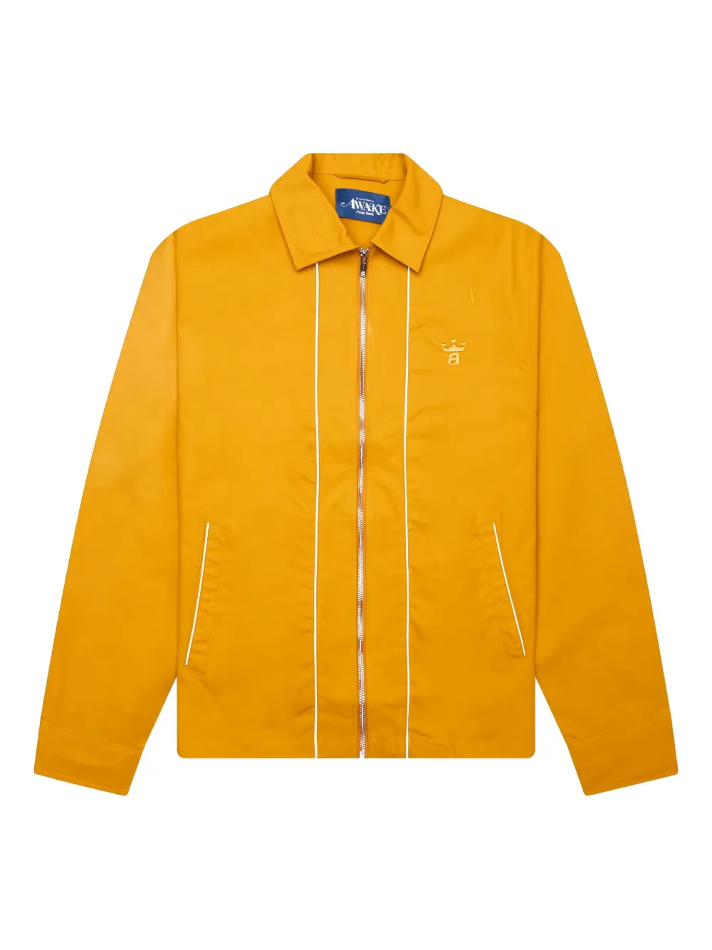 jaune logo brodé fermeture zippée liserés blancs manches longues poignets boutonnés