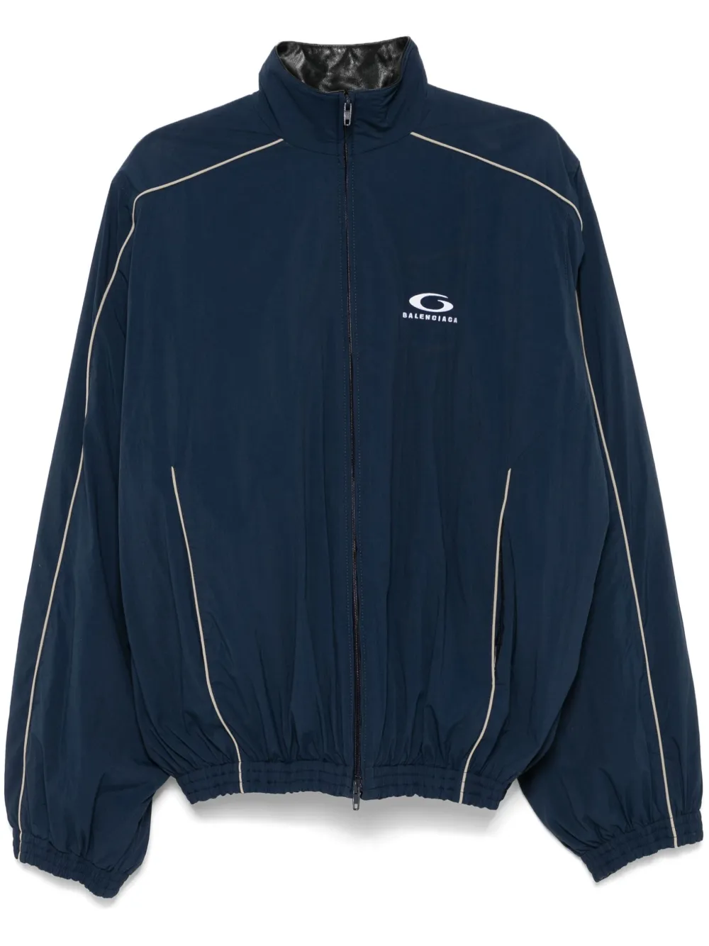 bleu marine effet froissé fermeture zippée à double sens sur le devant col montant bordures passepoilées manches longues poignets élastiqués logo brodé sur la poitrine poches latérales zippées poches intérieures zippées doublure en cuir ourlet élastiqué Lorsque vous passez commande, veillez à prendre en compte que les mensurations indiquées pour cet article unisexe correspondent à la taille homme. Pour en savoir plus sur ce qui rend un produit responsable, consultez notre page critères CHOIX CONSCIENT.