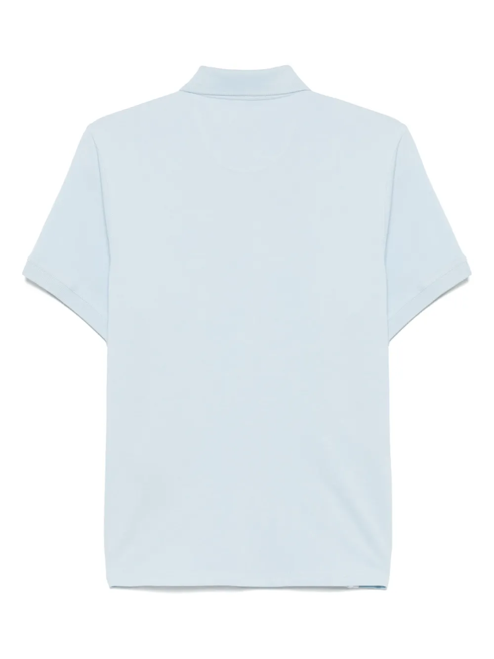 hemelsblauw korte knoopsluiting aan de voorkant korte zijsplitten geborduurd logo op de borst geribbelde manchetten