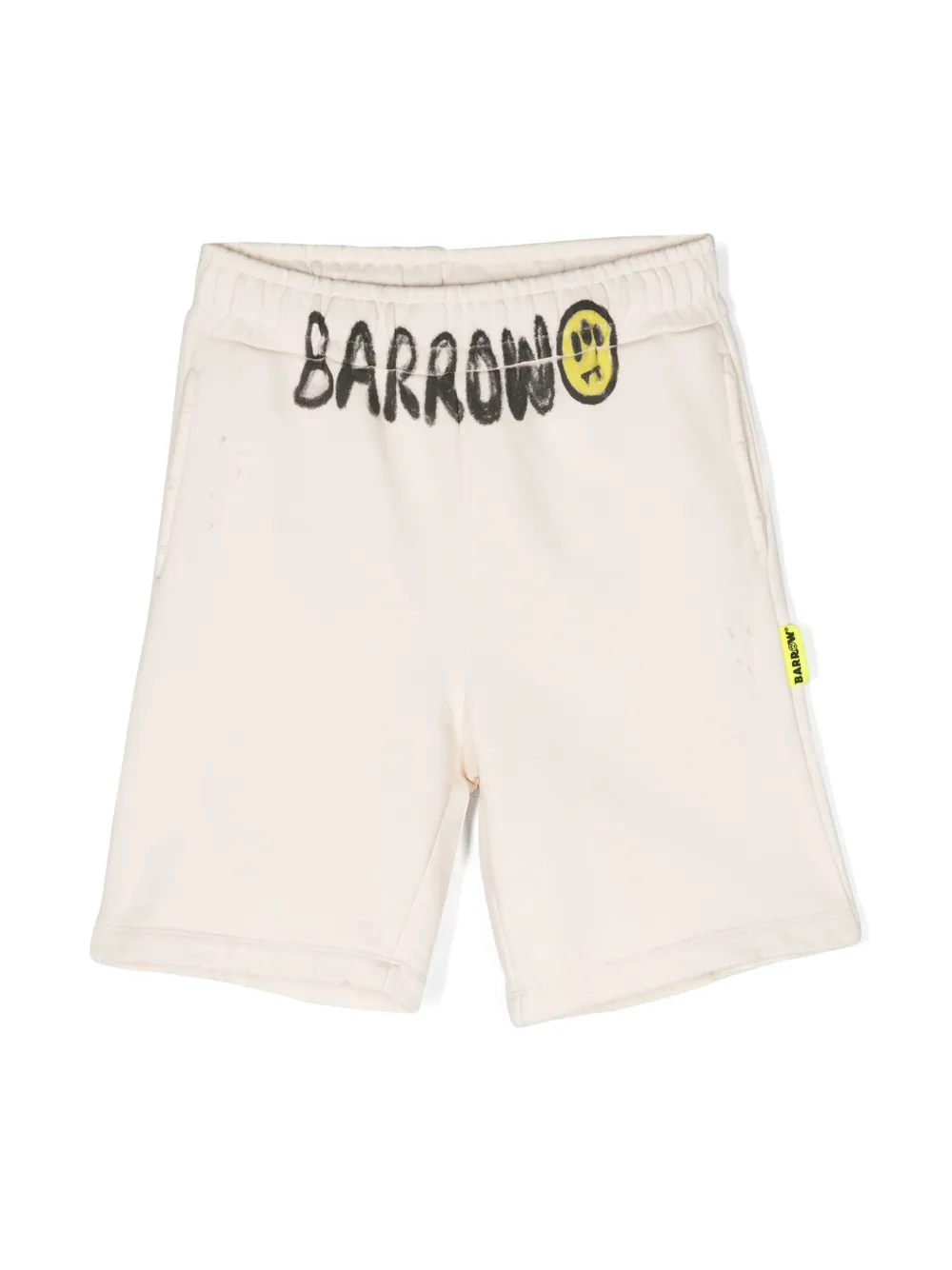 beige amande coton texture jersey effet usé logo imprimé sur le devant taille élastique à lien de resserrage coupe droite deux poches latérales passepoilées ourlet droit doublure en éponge longueur genou