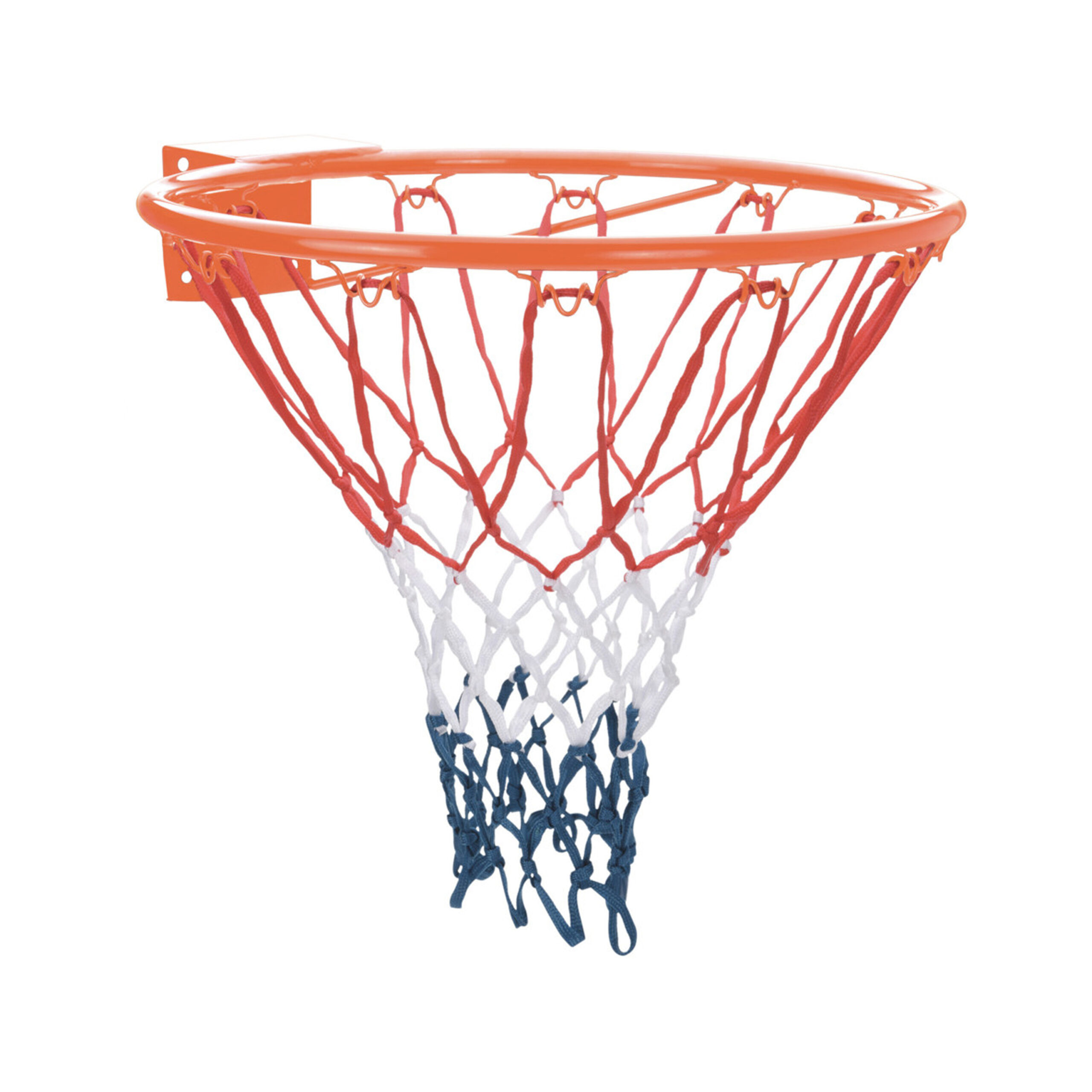 Basketbal ring met net. Professionele basket met net, ongeveer 46 cm groot. De ring is rood met ook een rood/ wit/blauw gekleurd netje. Dikte van de ring 16 mm. Diameter 46 cm. Bevestingsmateriaal wordt meegeleverd. De basket is eenvoudig zelf te monteren. Geschikt voor binnen en buiten.