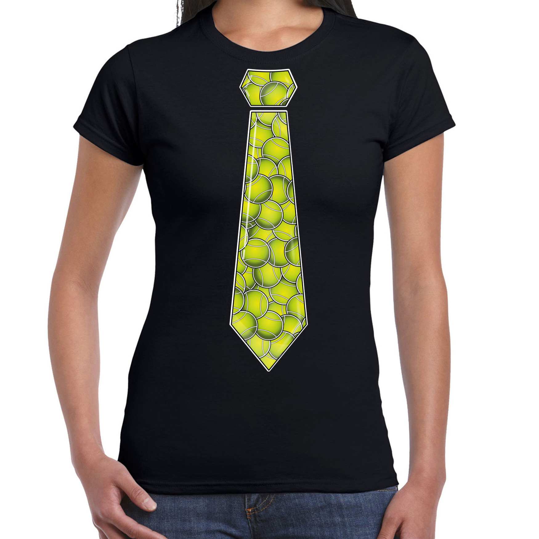 Verkleed T-shirt dames – zwart – tennis racket stropdas – sport/themafeest