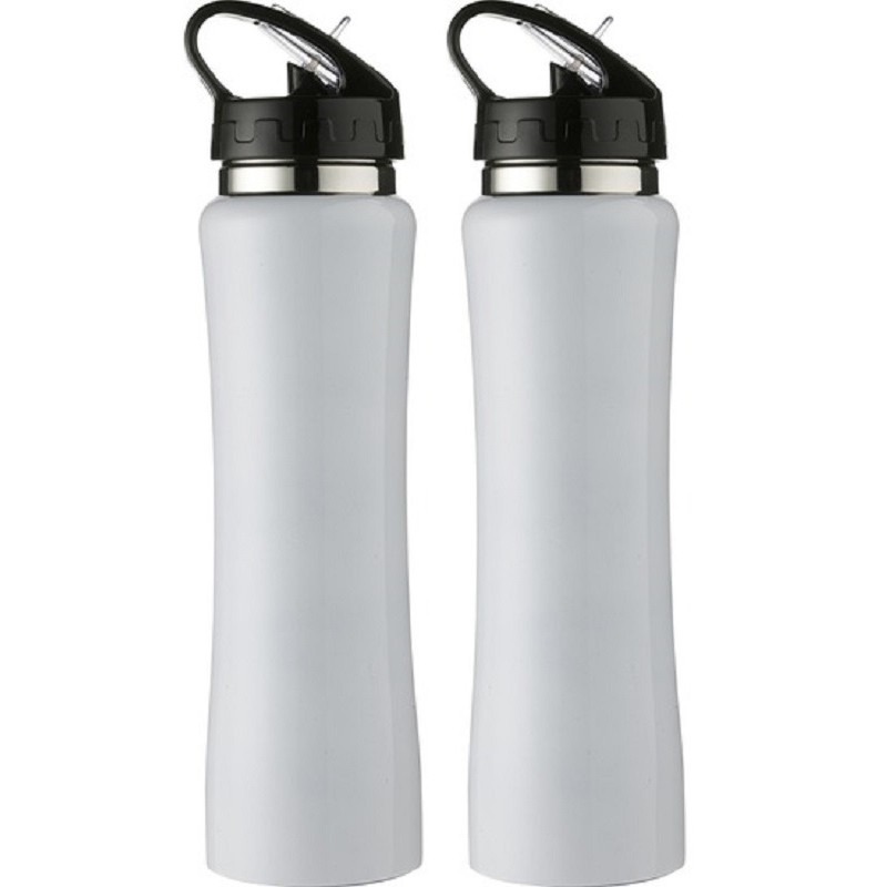 2x roestvrijstalen water drinkfles/bidon met kunststof deksel en buigbare tuit en rietje. Kleur: Wit. De drinkfles is dubbelwandig. Inhoud: 800 ml. Formaat ca: 24 x 7 cm. Materiaal: RVS roestvrijstaal. Drinkflessen/waterflessen voor onderweg.