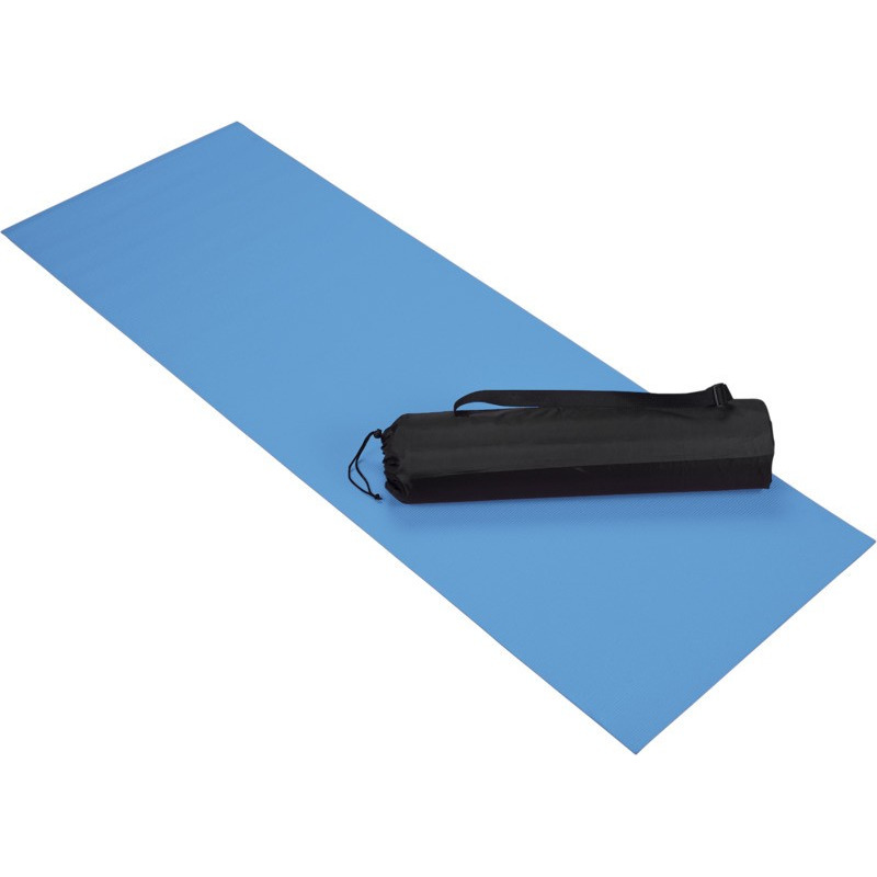 Blauwe yoga/fitness mat 60 x 170 cm. Deze blauwe yoga sportmat met anti slip oppervlak heeft een formaat van ca. 60 x 170 cm en is gemaakt van polyester en PE foam. De mat wordt geleverd inclusief polyester draagtas met verstelbare riem zodat de fitness/yoga sportmat gemakkelijk mee te nemen is.