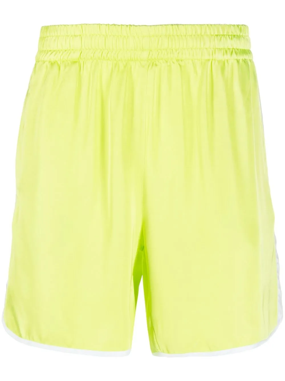 Vert fluorescent, blanc, fini satiné, ceinture élastique, coupe courte.