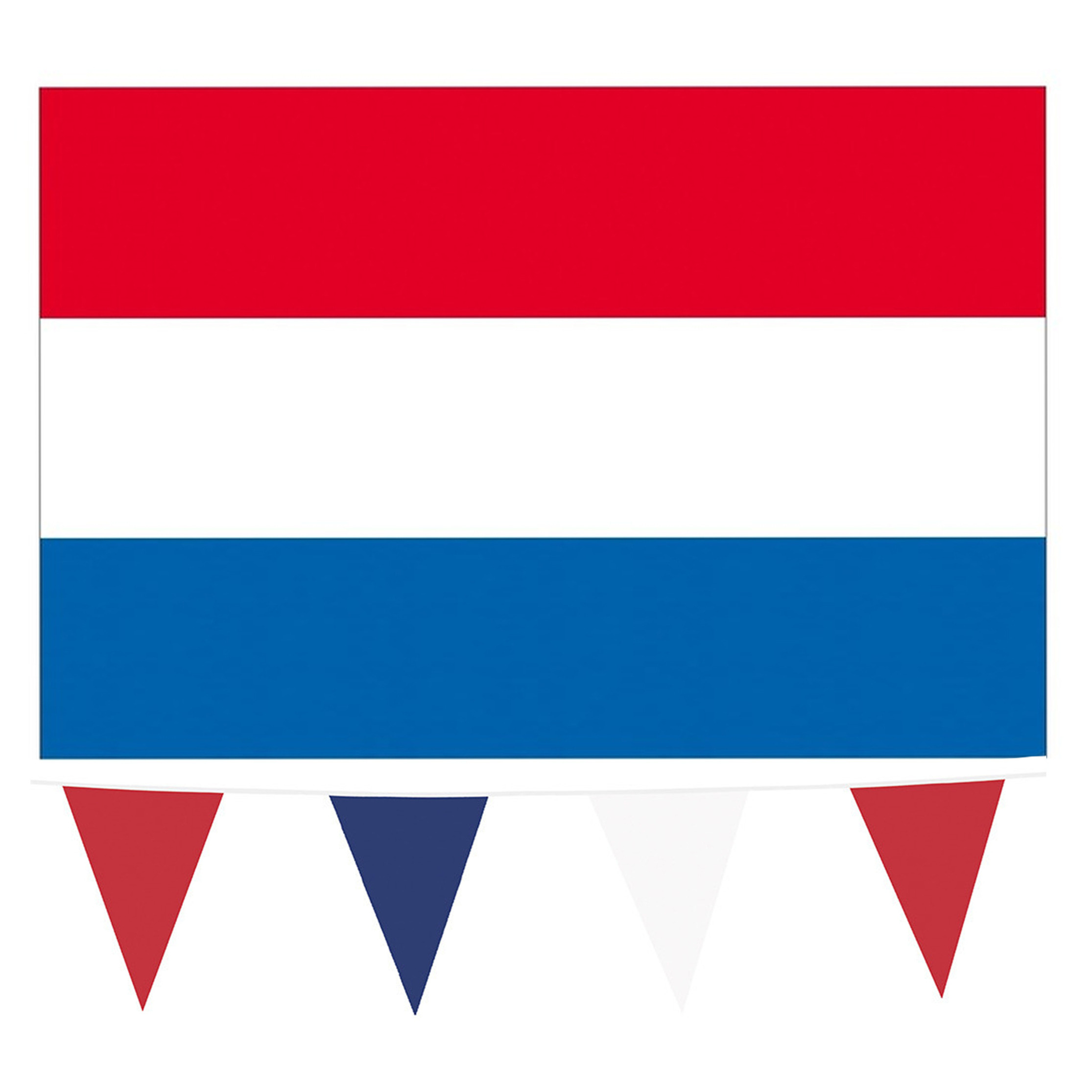 Nederland vlaggen versiering set binnen/buiten. Deze decoratie vlaggen feestartikelen pakket bestaat uit een landenvlag met ringen van 90 x 150 cm en 2x stuks een plastic rood-wit-blauwe vlaggenlijnen/slingers van 10 meter. Landen thema voor sport/landen liefhebbers en supporters. Holland oranje supporters feestartikelen en versieringen. , Dit artikel bestaat uit:, 1x Vlag Nederland – 90 x 150 cm – Nederlandse Vlaggen – Nederland / Dutch, 2x Vlaggenlijnen rood/wit/blauw – 10 meter – plastic – Holland – Nederland – vlaggetjes